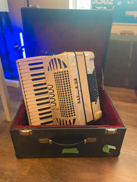 Excelsior Vintage Accordion – 34-Key / 72-Bass – Pearl White Fin