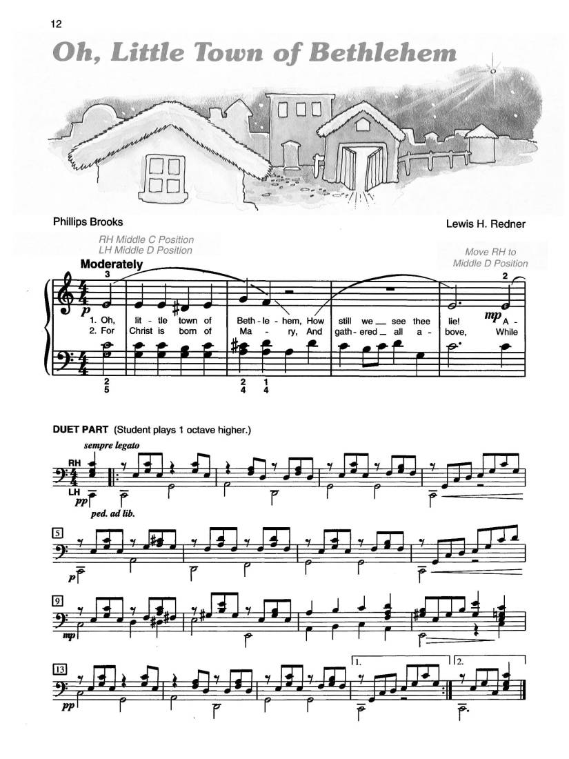 These charming collections of popular Christmas carols for beginning piano students are arranged in order of difficulty. Each song includes an optional duet part for a teacher or parent to play on the same keyboard.