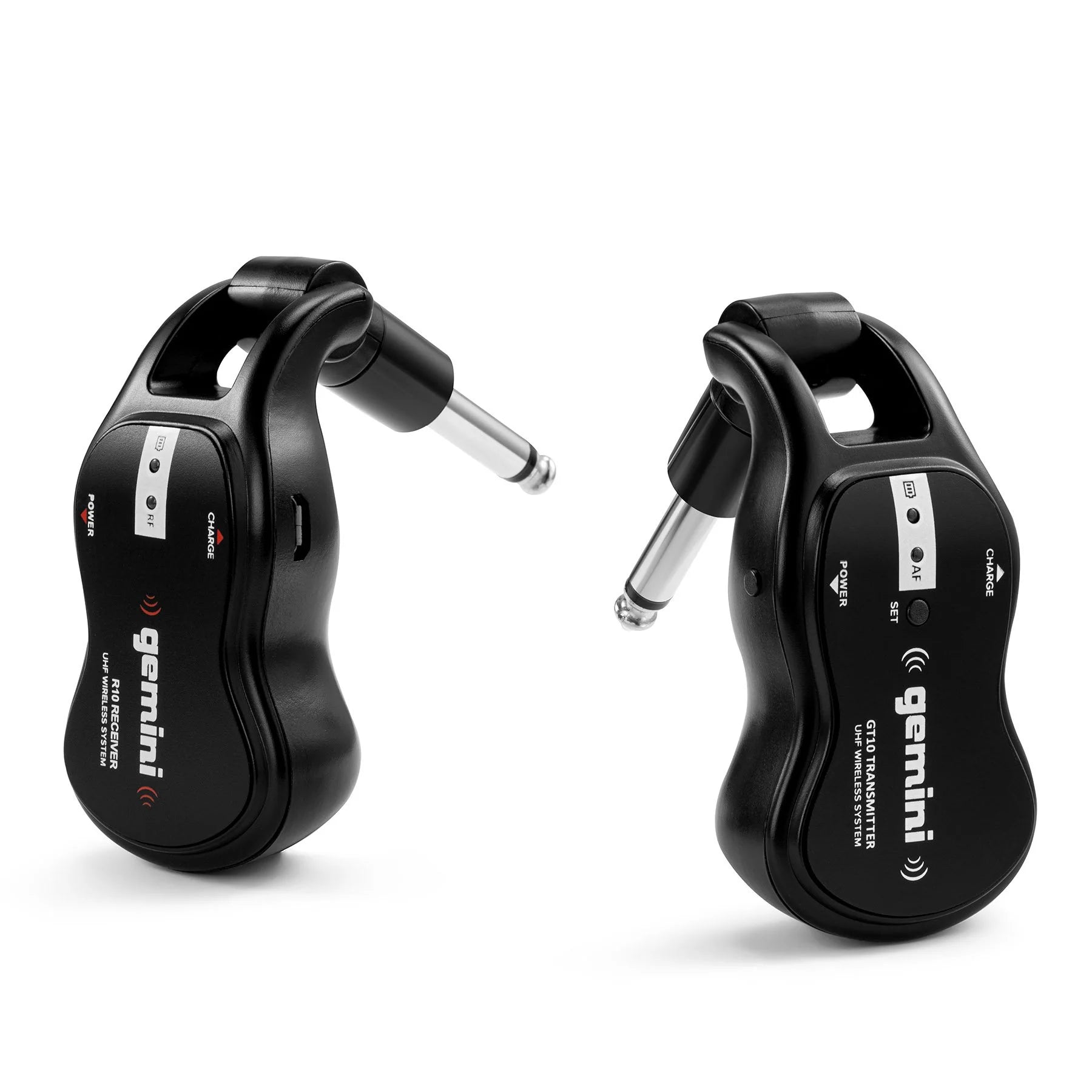 The GMU-G100 is a UHF Wireless Guitar System with a rechargeable 1/4" wireless transmitter and receiver. This expandable Plug & Play system will meet all your wireless guitar needs with USB rechargeable batteries and a long-distance wireless connection, just plug in and power on and you’re ready to rock. The GMU-G100 is made for Electric and Acoustic/Electric guitars but will work with any instrument or audio device with a 1/4” output that requires movement on stage, such as a Keytar or Electric Violin. We’ve put our years of audio industry experience into developing a high-quality wireless system that only Gemini can provide.