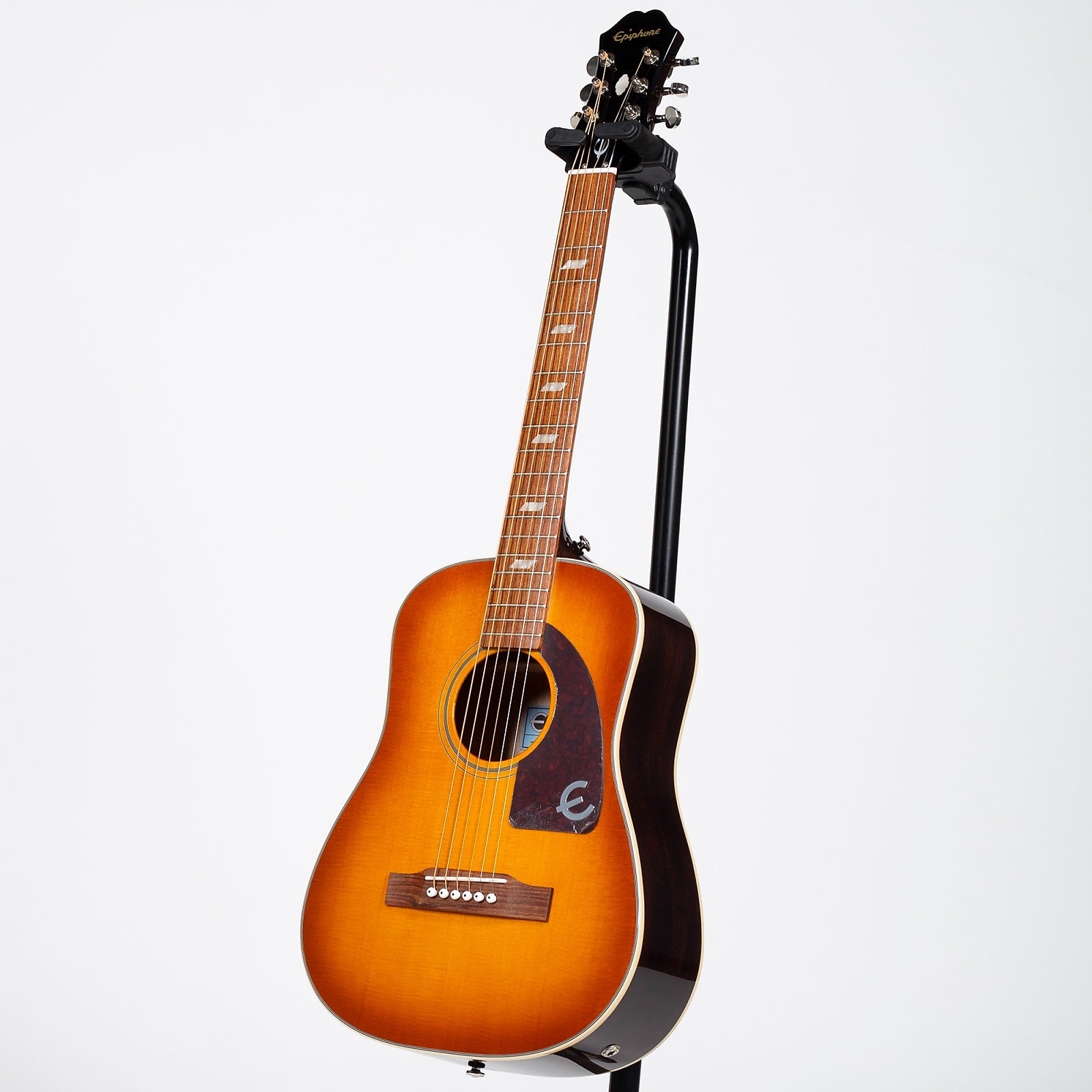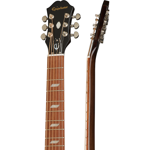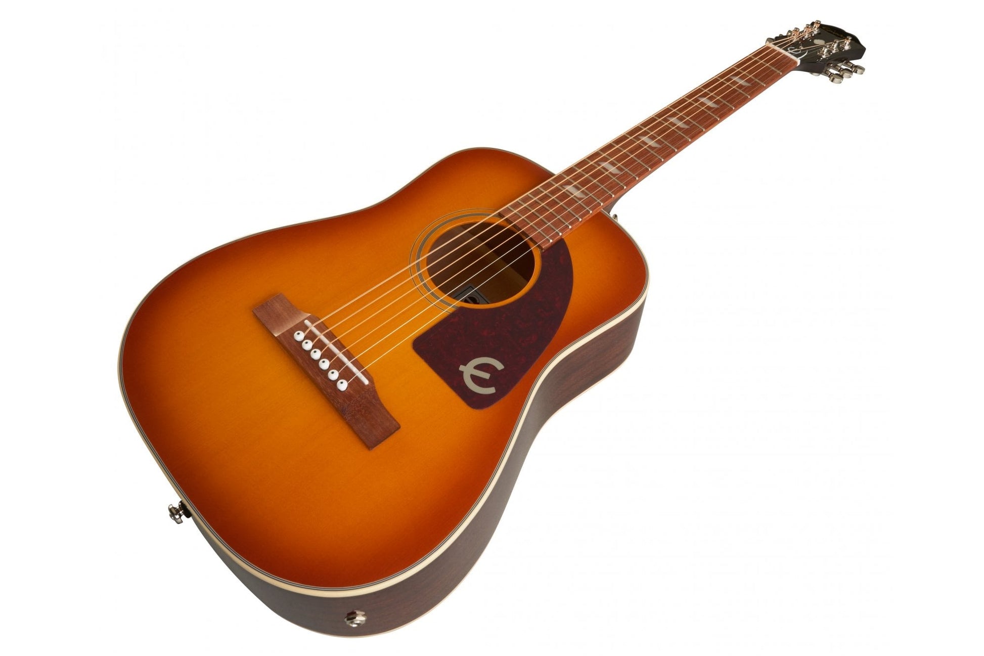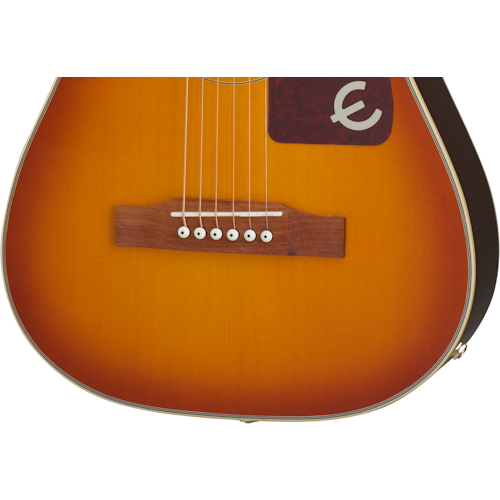 solid spruce top in a traditional Faded Cherry finish, mahogany neck, Epiphone hardware, granadillo bridge, and passive acoustic pickup. Gig bag included.