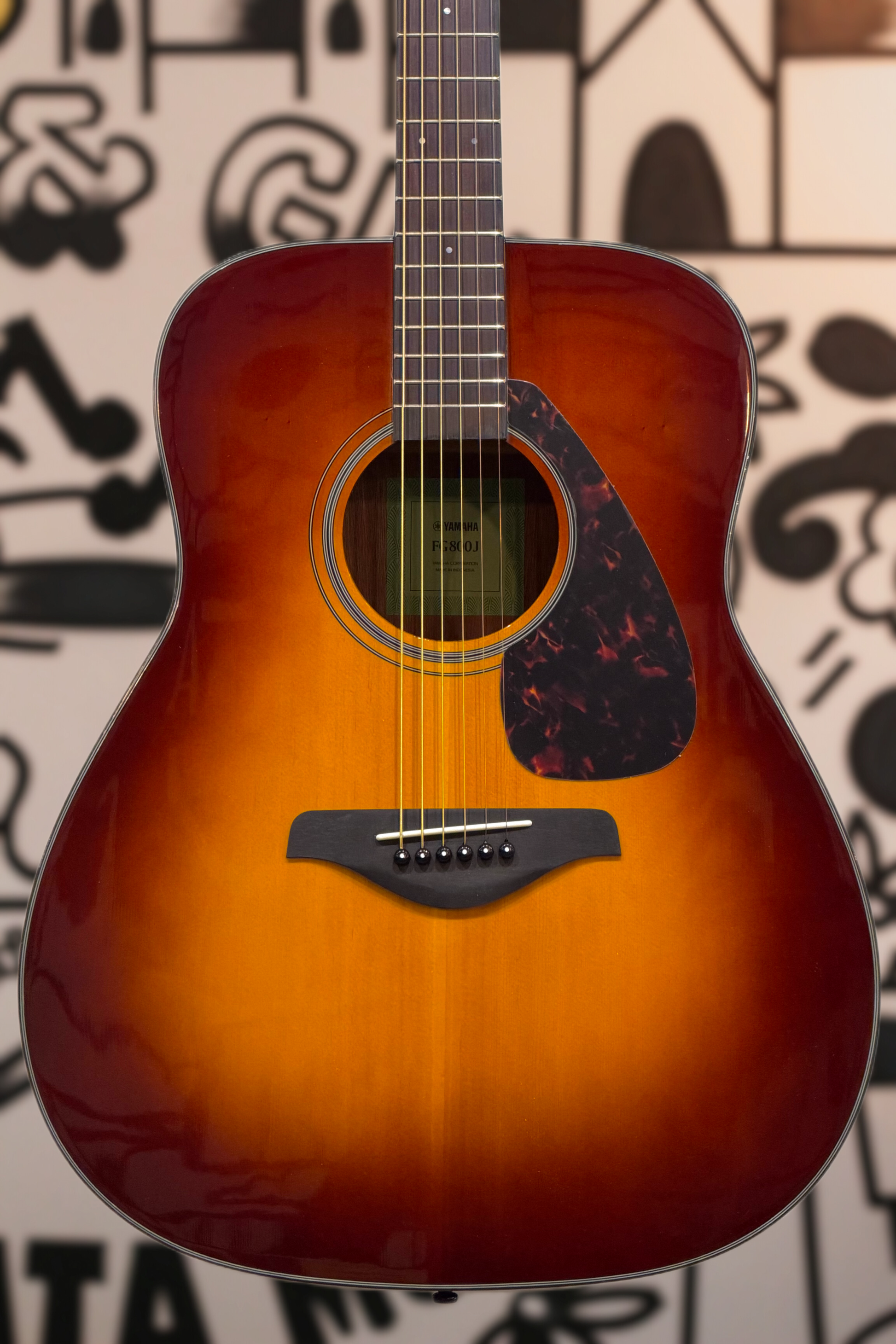 The Yamaha FG800J dreadnaught-style acoustic has a solid spruce top and nato/okoume back and sides.
